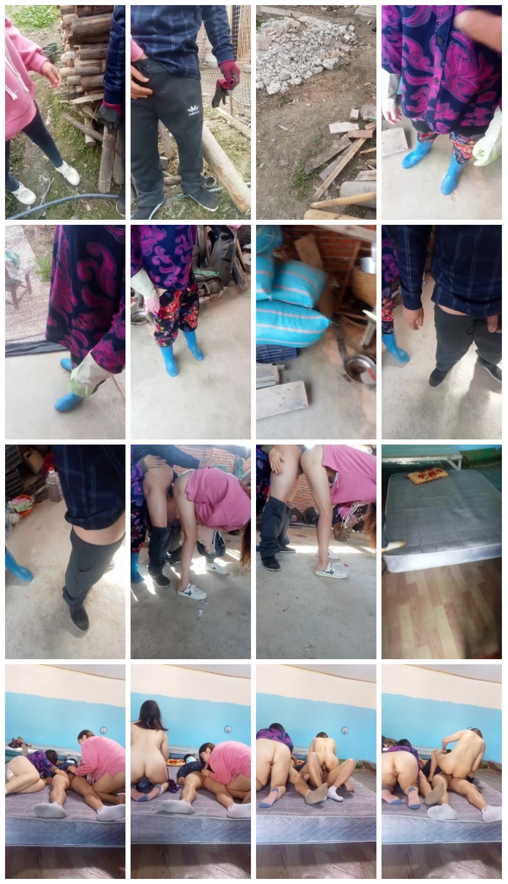 户外勾搭农民大哥激情4P啪啪,拖拉机旁脱了裤子给大哥口交大鸡巴,后入爆草抽插,到了床上激情4P淫乱又刺激